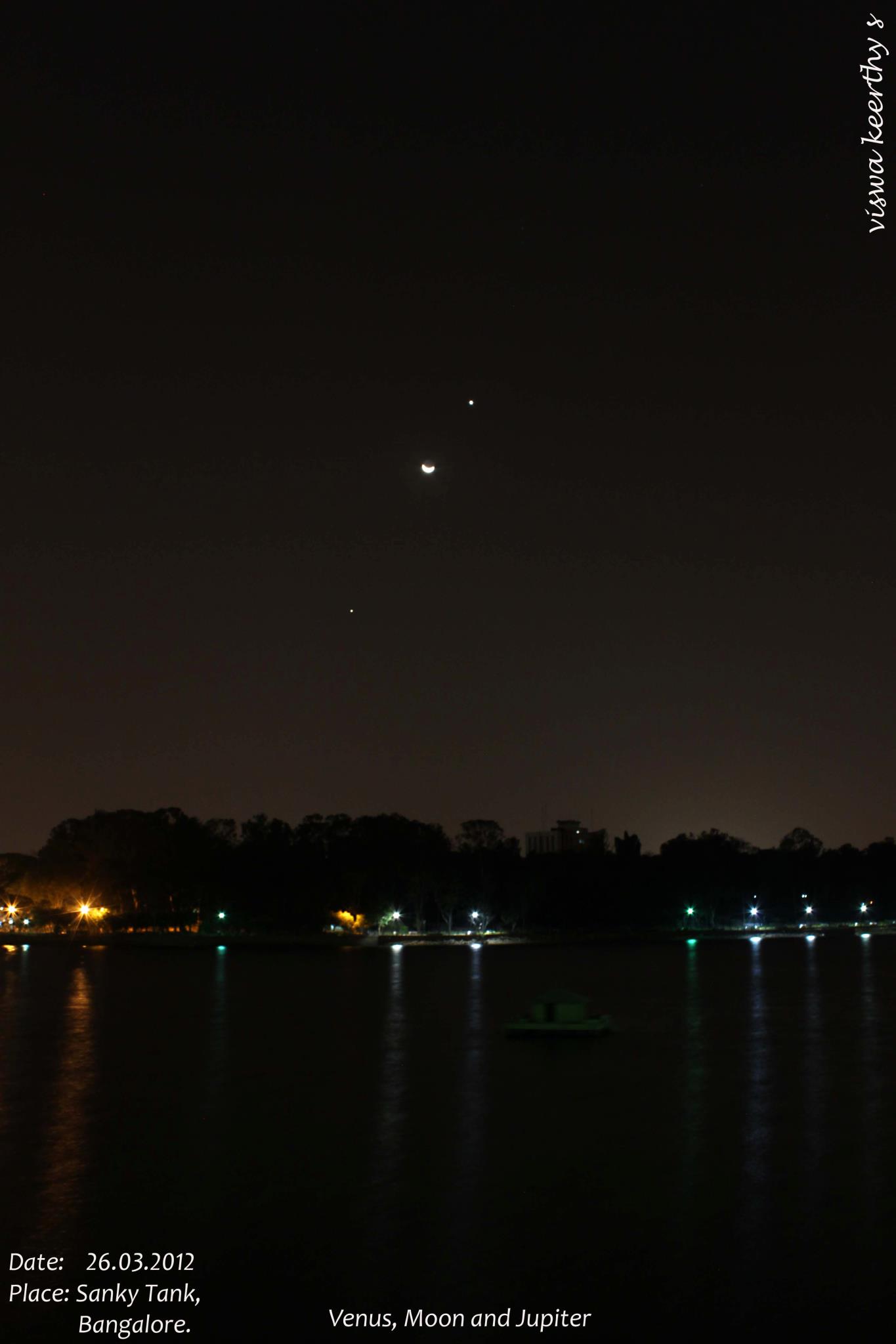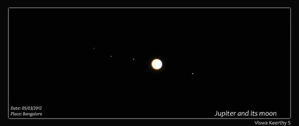 ರವಿ ಇಳಿದ ದಿಕ್ಕಿನಲ್ಲಿ, ಬೆಳ್ಳಿ ಮೂಡಿಹನು ಸಲ್ಫರ್ ಗಳ ಮೋಡ ಹಿಡಿದಿರುವ ಶುಕ್ರ; ಪಡುವಣದಿಕ್ಕಿನಿಂದ ಬೆಳ್ಳಿಯ ನಂತರ ಅನಿಲ ಮೋಡಗಳ ಧೈತ್ಯನಾದ ಗುರು ದರ್ಶನ; ನೆತ್ತಿಯ ಆಸು ಪಾಸಲ್ಲೇ, ಹಳದಿ-ಕೆಂಪು ಮಿಶ್ರಿತ ಮಂಗಳನ ಅಂಗಳ ಗೋಚರ; ತನ್ನ ಬಳೆಯ ವಾರೆ ನೋಟದಲ್ಲೇ ಮನ ಗೆದ್ದಿರುವ ಶನಿ, ಈಗ ಮಂಗಳನ ಹಿಂಬಾಲಿಕ