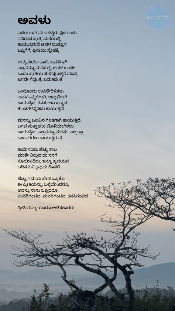 ಹೀಗಿರುವಾಗ, ಅಲ್ಲೆಲ್ಲೋ…. ಹುಣ್ಣಿಮೆ ಬೆಳಕ ಮರೆಯಲ್ಲಿ ನಿಂತ ಪ್ರೀತಿ ಅತ್ತಿತ್ತ ನೋಡುತ್ತಾ, ಕಣ್ಣು ಮಿಟಿಕಿಸುತ್ತ, ಎಲ್ಲರ ಕಣ್ತಪ್ಪಿಸಿ, ಆ ಎರಡು ಸಾಲುಗಳ ಹುಡುಕುತ್ತಿತ್ತು.